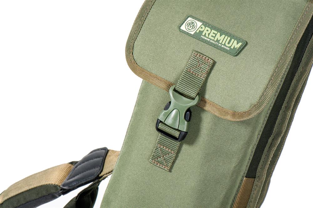 Kvalitně navržená série obalů na trojdílné nebo dvojdílné kaprové pruty s kompletním polstrováním, vyrobená z pevného a nepromokavého materiálu B-POL600D. Obal je vybaven přepravními uchy i polstrovaným ramenním popruhem, prostornými kapsami na deštník, vidličky a další příslušenství. Je osazen desénovými táhly zipů MIVARDI.