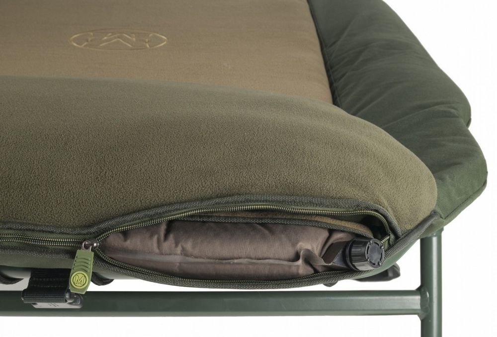 Unikátní osminohé lehátko s integrovanou samonafukovací matrací, fleecovým potahem a velmi pohodlným velkým polštářem. Vzduchová matrace poskytuje mimořádný komfort, který se prakticky vyrovná kvalitní posteli ve vaší ložnici. Vzduchová vrstva v matraci je zároveň vynikající tepelný izolant. Lehátko je 100% ploché díky konstrukci rámu bez použití kloubu. Pokročilý napínací systém ve střední části umožňuje zvýšit celkovou "tvrdost" matrace. Nohy jsou osazeny velkými patkami a spolehlivým systémem aretace.