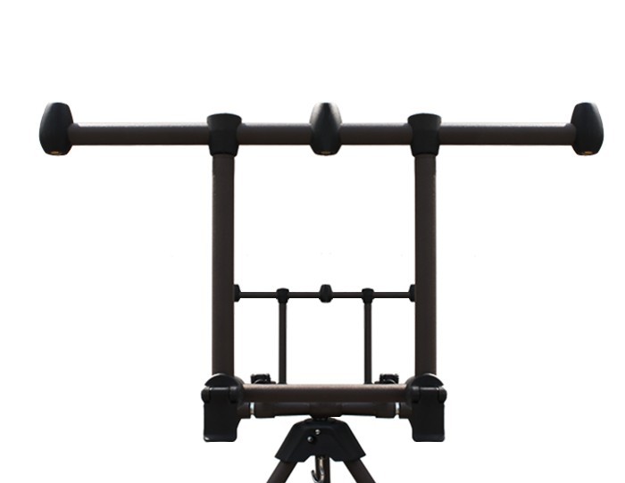 Celá základňa je postavená na troch nohách, ktoré sú vyrobené z ľahkého, ale robustného 22mm okrúhleho profilu. Profily sú povrchovo farbené práškovou farbou, ktorá ponúka vynikajúcu ochranu proti korózii, opotrebeniu a agresívnemu prostrediu. Všetky závity (vonkajšie aj vnútorné) sú vyrobené z mosadze, čo výrazne prispieva k celkovej trvácnosti stojana.