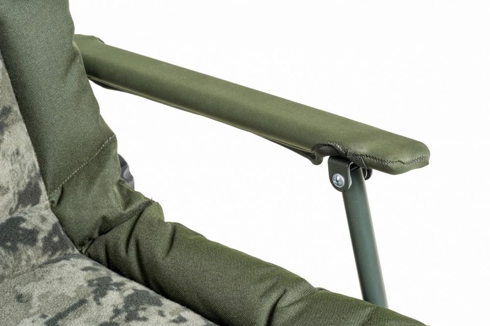 Unikátne superľahké kreslo z inovatívneho materiálu DuraLite s extrémne pohodlným, silne vystuženým matracom v dizajne digitálneho maskáča CamoCODE. Jeho veľkou výhodou je miniatúrny kĺb umožňujúci nastavenie sklonu operadla. Pevné opierky rúk s neoprénovým poťahom zvyšujú celkovú pevnosť kresla a zároveň sú veľmi pohodlné a príjemné na dotyk.