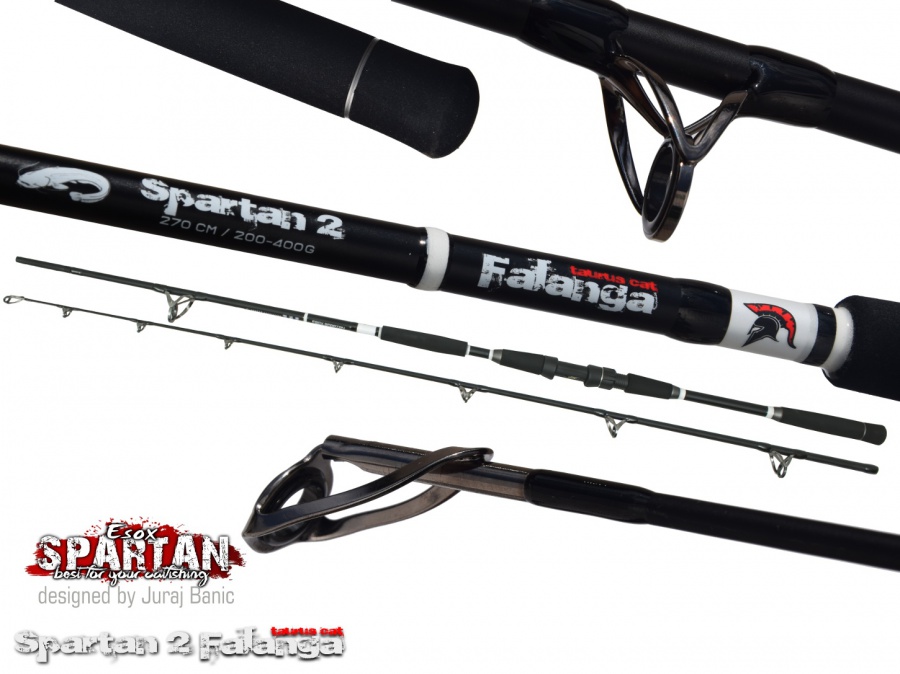 Moderný dizajn prútu Spartan 2 a jeho matná čierna povrchová úprava mu dodáva eleganciu a štýl. Spoj prútu je zosilnený , aby odolal aj tým najsilnejším zaťaženiam a nárazom. Pružná akcia prútu nám zabezpečuje pôžitok pri zdolávaní veľkých aj malých rýb. Spartan 2 Falanga je zostavený tak, aby elegantne vytlmil kopance a výpady tých najväčších sumcov, čomu sa poďakujú najme predlaktia lovca.