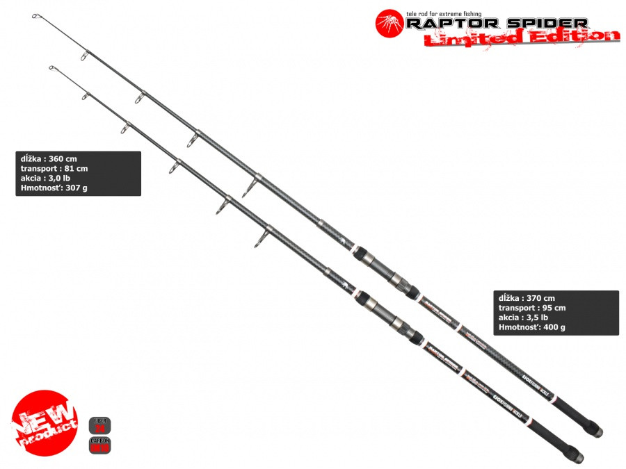 Limitovaná edícia populárnych karbónových tele-carp prútov Esox Raptor Spider.