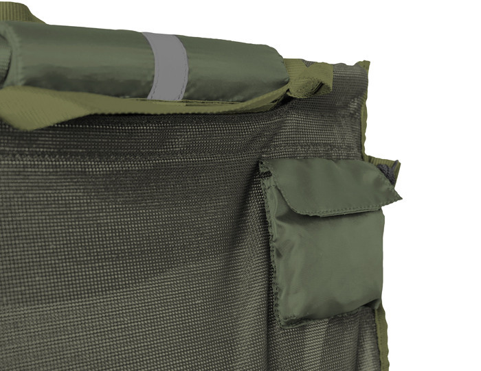 Vďaka reflexným páskam na plavákoch uvidíte tašku po zasvietení čelovkou vo vode aj po tme. Sieťovaný materiál okrem toho znižuje celkovú hmotnosť tašky a pri dvíhaní a manipulácii s rybou všetka voda vytečie, teda nepreťažuje sa materiál a umožňuje aj presnejšie váženie. Masívny zips je po oboch bokoch tašky a takisto na vrchnej časti, to znamená, že WSM dokážete takmer celú rozzipsovať pre príjemnejšiu manipuláciu s rybou. Pevné hliníkové trubky s priemerom 25mm je možné bez problémov zložiť, aby pri transporte nezaberali miesto. Vďaka dlhým textilným popruhom je zavesenie na trojnožku veľmi komfortné a jednoduché. Tieto popruhy majú kovové oká na zavesenie tašky na hák váhy a pod. Na bežné prenášanie poslúžia štyri kratšie popruhy v rohoch tašky. Samozrejmosťou je kotviaca šnúra s dĺžkou až 4,5m a so závitom na konci. Vďaka tomuto systému je kotvenie na brehu veľmi bezpečné. Šnúra je umiestnená v integrovanom a diskrétnom vrecúšku na boku tašky. Vo vrchnej časti a takisto na boku sa nachádza klip, ktorý slúži na fixovanie bežcov zipsa, aby nedošlo k neželanému otvoreniu tašky, alebo je možné klipy použiť ako ďalšie body na kotvenie.