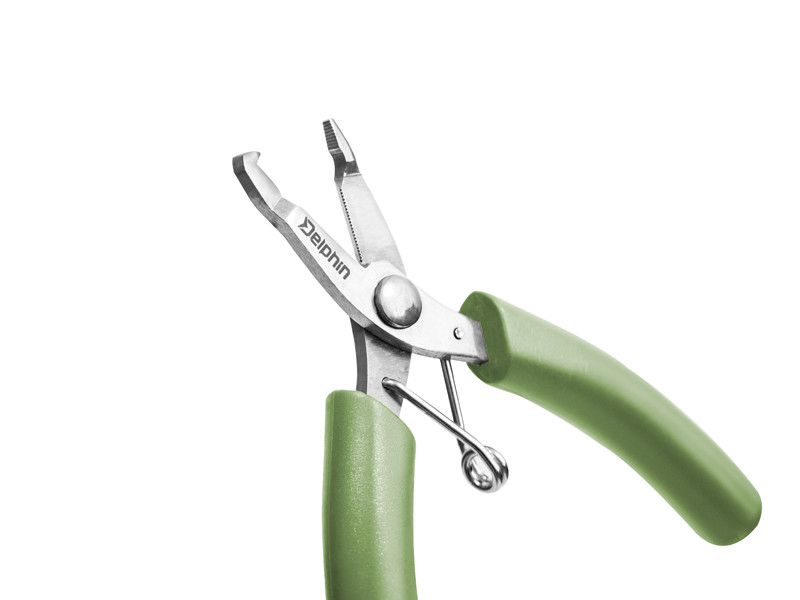 Praktické, multifunkčné kliešte, vyrobené z nehrdzavejúcej ocele s gumeným poťahom na madlách, pre pohodlnú manipuláciu. Delphin MINI si hravo poradia so strihaním splietaných šnúr, vlascov ale aj aramidového (kevlarového) vlákna. Mikrozúbky na vnútornej strane čeľustí slúžia k pridržaniu rybárskej šnúry, a k následnému hladkému odstrihnutiu. Kliešte je možné využiť taktiež na rozdelenie SPLIT RINGS krúžkov, či upevnenie vyvažovacieho olovka. Vďaka svojej univerzálnosti ich je možné využiť pri všetkých rybolovných technikách.