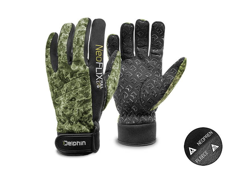 Neoprénové rukavice Delphin NeoFLIX sú dokonalým doplnkom pre zachovanie rúk v teple a suchu. Oproti štandardným neoprénovým rukaviciam sme pridali do vnútra flísovú vložku, čo posúva level komfortu pri zimnej rybačke na novú úroveň. Veľkou výhodou je aj protišmyková plocha na dlani, ktorá je vybavená pogumovanou vrstvou s logami značky Delphin.