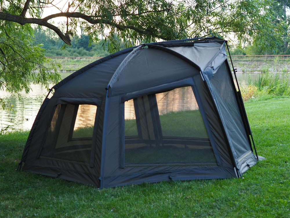 Bivak je dodávaný s praktickou transportnou taškou na zips, odnímateľnou hrubostennou zips PVC podlahou a nerezovými zavrtávacími a zatĺkacími kolíkmi.