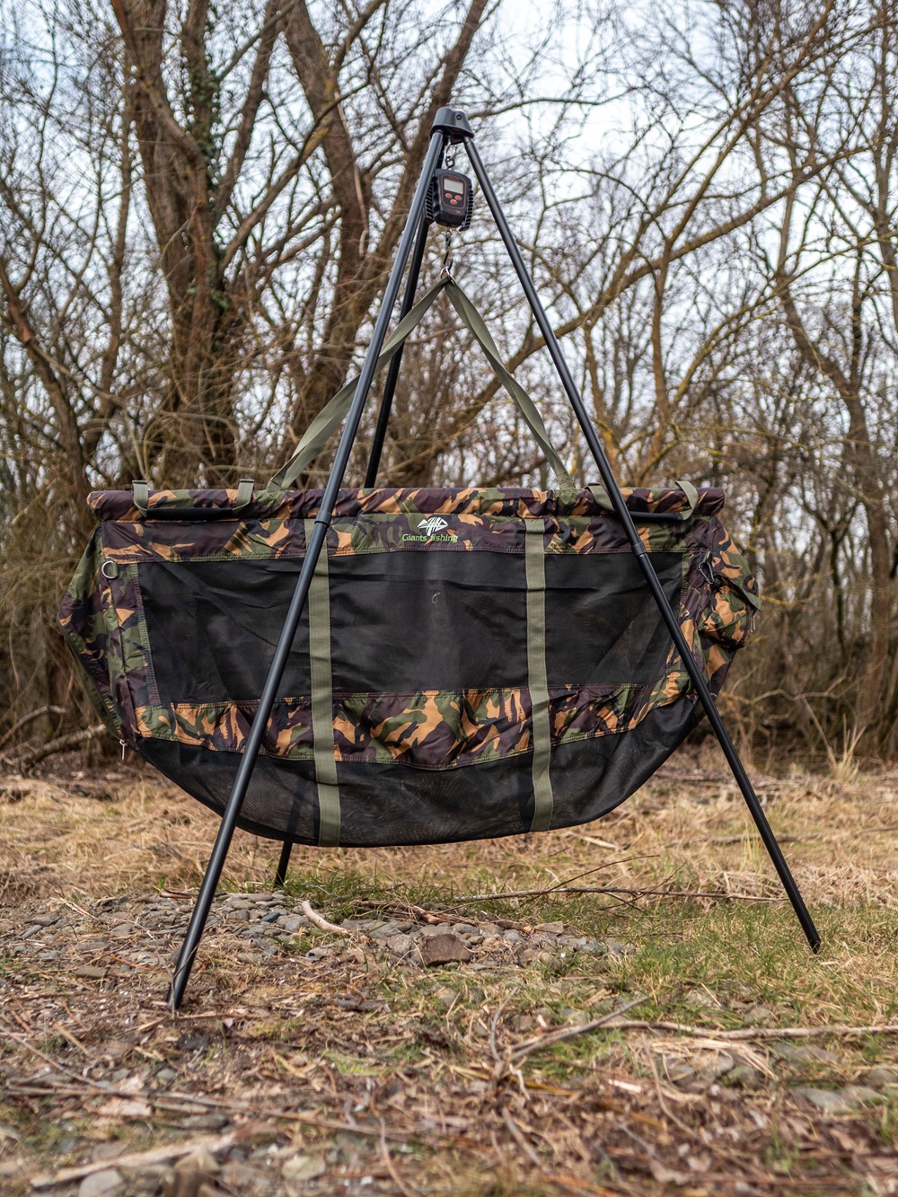 Kvalitné spracovanie a povrchová úprava v čiernej farbe. Nohy stojana sú prepojené silnou gumou s gumovou ochranou proti oderu, vďaka tomuto systému sklápaný stojan ľahko a rýchlo rozložíte a zložíte. Vo vrchnej časti je robustná plastová hlava, ktorá je v stredovej časti osadená otočným hákom, ktorý slúži na zavesenie váhy.