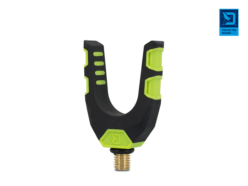 Zadný držiak prúta tvaru U, navrhnutý vo farbách inovatívnej feederovej série Delphin Reaxe. Držiak sa vyznačuje excelentným spracovaním a vyniká svojou robustnosťou a odolnosťou. Špeciálne navrhnutý tvar umožňuje uloženie prútov s rôznymi priemermi rukovätí. Povrch je potiahnutý pogumovaným materiálom, ktorý je extra šetrný k povrchu prúta a chráni ho pred poškodením. Držiak je vyrobený z odolných materiálov, takže sa ľahko nepoškodí a nepoškriabe. Univerzálny závit umožňuje uchytenie na všetky štandardné ramená, stojany a rázsošky. Na závitovej časti sa nachádza gumená podložka, ktorá zamedzuje otáčaniu držiaka.