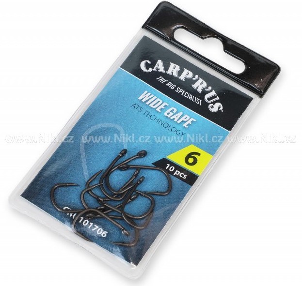 Háček je vyrobený z nejlepší japonské oceli z dostatečně silného drátu. Unikátní zakalení a speciální povrchová úprava dělá háčky Carp´R´Us skutečně výjimečné. Předností háčku Wide Gape i ostatních našich háčků je pomalé otupování. V ideálních podmínkách dokážete na jeden háček vytáhnou i několik kaprů a háček bude stále ostrý.