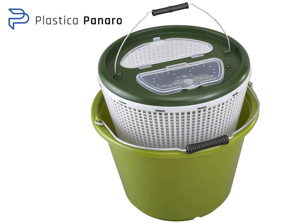 Toto rybárske vedierko obsahuje 18 l s dierkovanou vyberateľnou vnútornou vložkou na ľahšiu výmenu vody a uchopenie živej návnady.