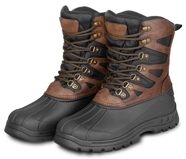Vrchná časť topánky je vyhotovená z kombinácie umelej kože a sieťoviny, ktoré udržia vaše nohy v teple aj pri veľmi nízkych teplotách. Na zvýšenie odolnosti voči chladu prispieva kombinácia fleecového materiálu a jemnej umelej kožušiny vo vnútri topánky. Spojenie týchto vlastností zabezpečuje pohodlie aj pri vychádzkach v extrémnom počasí, napríklad pri love na dierkach, kde topánka prichádza do priameho kontaktu s ľadom.