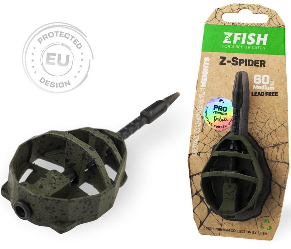 Krmítko Spider představuje novou generaci method feeder krmítek, která spojuje precizní zpracování, promyšlený design a maximální funkčnost. Na jejich vývoji se podílel tým zkušených specialistů značky ZFISH, díky čemuž vzniklo krmítko, které splňuje i ta nejvyšší očekávání moderního rybáře. Tvar Spidera zaručuje dokonalé vyvážení při nahazování a jisté dosednutí ke dnu vždy tou správnou stranou. Nově navržený nosný rám zajišťuje optimální uvolňování krmné směsi a zároveň chrání nástrahu během náhozu. Součástí konstrukce je speciální ploška pro přesné umístění nástrahy s háčkem, která zajistí, že vaše nástraha bude vždy v ideální pozici. Krmítka Spider umožňují rychlou výměnu zátěže díky vyjímatelné trubičce a otvoru na zadní straně. Stačí vysunout trubičku, uvolnit vlasec a vyměnit zátěž za jinou – bez nutnosti převazování celé sestavy. Krmítka jsou vyrobena z bezolovnatého materiálu v matně zeleném provedení s černými tečkami, které dokonale splyne s dnem a minimalizuje plašení ryb.