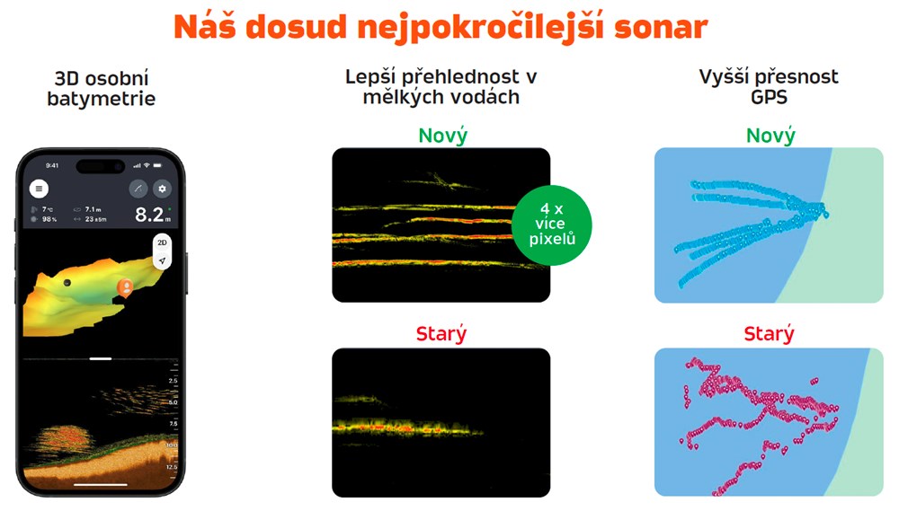 • Rýchlosť skenovania sonaru: 15 skenov za sekundu