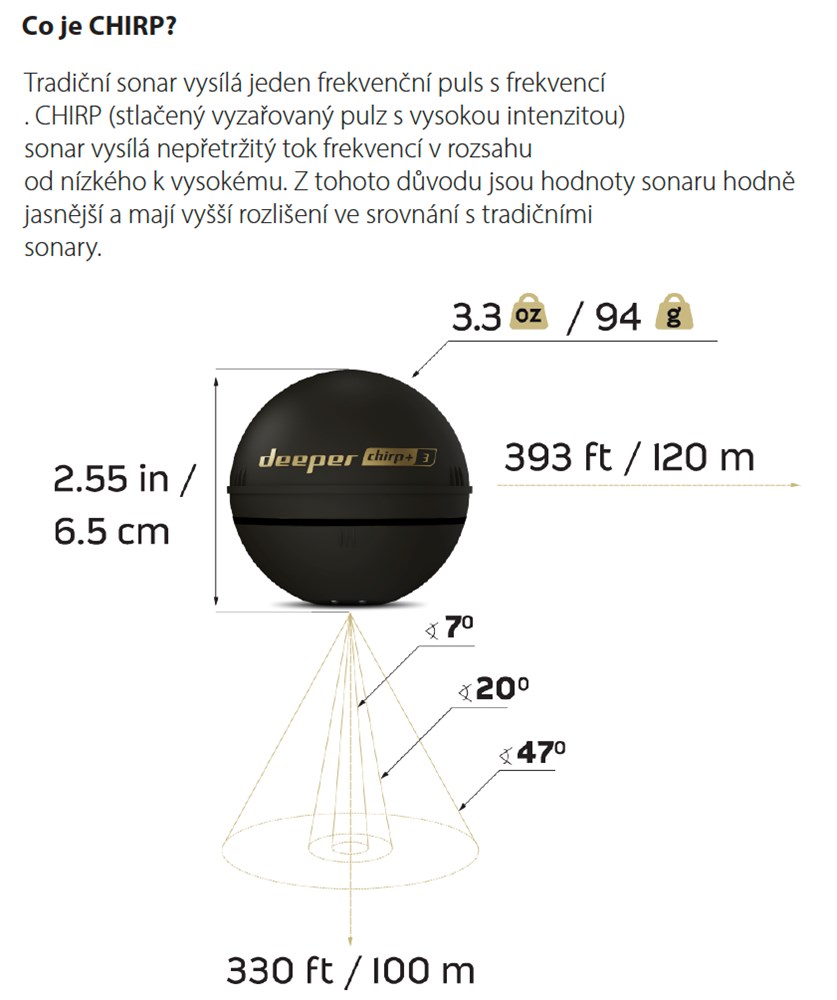 Tradičný sonar vysiela vždy iba jeden frekvenčný impulz. Sonar CHIRP (Compressed High Intensity Radiated Pulse = komprimovaný vysoko intenzívny vyžarovaný impulz) vysiela nepretržitý tok frekvencií od nízkych po vysoké. Vďaka tomu sú údaje zo sonaru oveľa jasnejšie av porovnaní s tradičnými sonarmi majú vyššie rozlíšenie.