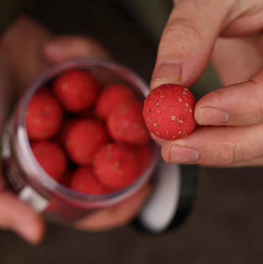 Jakmile nástraha začne pracovat, vytváří kolem montáže stabilní potravní signál, který se ve vodě šíří postupně a přirozeně. Intenzivní jahodové aroma vytváří výraznou sladkou stopu, kterou kapři velmi dobře registrují a často na ni reagují i při nižší aktivitě nebo na tlakových vodách. Díky uvolňování atraktivních složek v čase zůstává prezentace účinná i ve chvílích, kdy potřebujete záběr vyprovokovat v náročnějších podmínkách. Kuličky jsou odlehčené drceným korkem, díky čemuž je nástraha lehce vybalancovaná a může lehce vzplývat nade dnem. Tato prezentace působí přirozeněji, zlepší nasátí nástrahy a často rozhoduje u opatrných kaprů, kteří reagují jen na dokonale čitelné a „lehké“ sousto. V praxi tak získáte jistější kontakt i ve chvílích, kdy kapři berou opatrně.