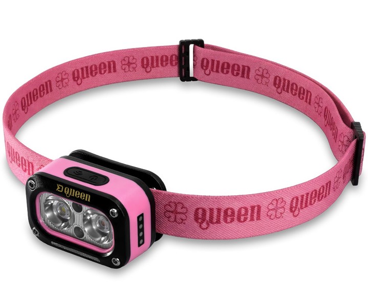 Na vrchnej strane sa nachádzajú dve tlačidlá pre ovládanie svetelných režimov a pohybového senzora. Čelovka disponuje dvomi hlavnými LED diódami, ktoré ponúkajú biele a originálne ružové svetlo. Po prvom stlačení sa rozsvieti biele svetlo v úspornom režime (55 lm) s výdržou až 7 hodín. Následné kliknutie aktivuje maximálny výkon (115 lm) s výdržou 3 hodiny.